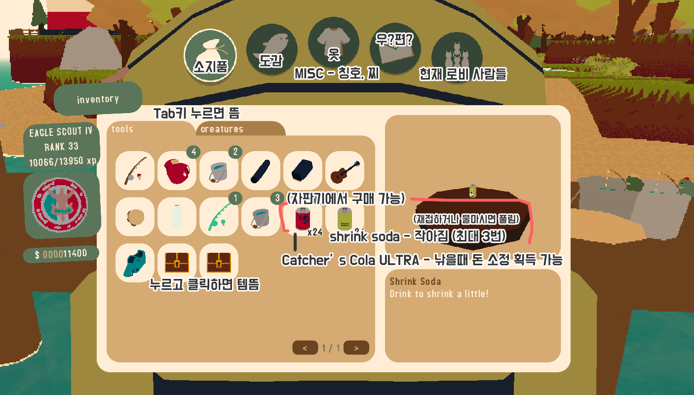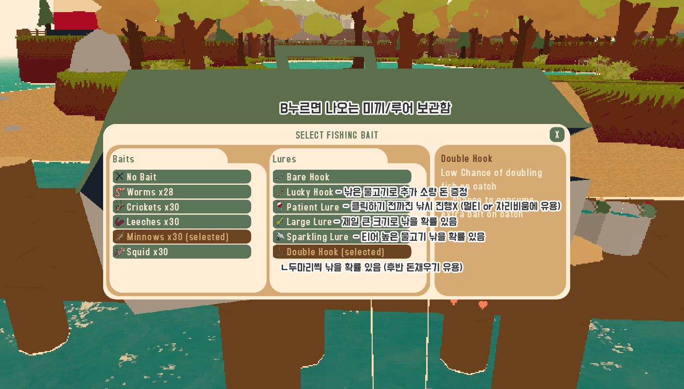 Shift 누르면 달리기 / 찌 빨리던지기 / 찌 빨리 회수하기 가능